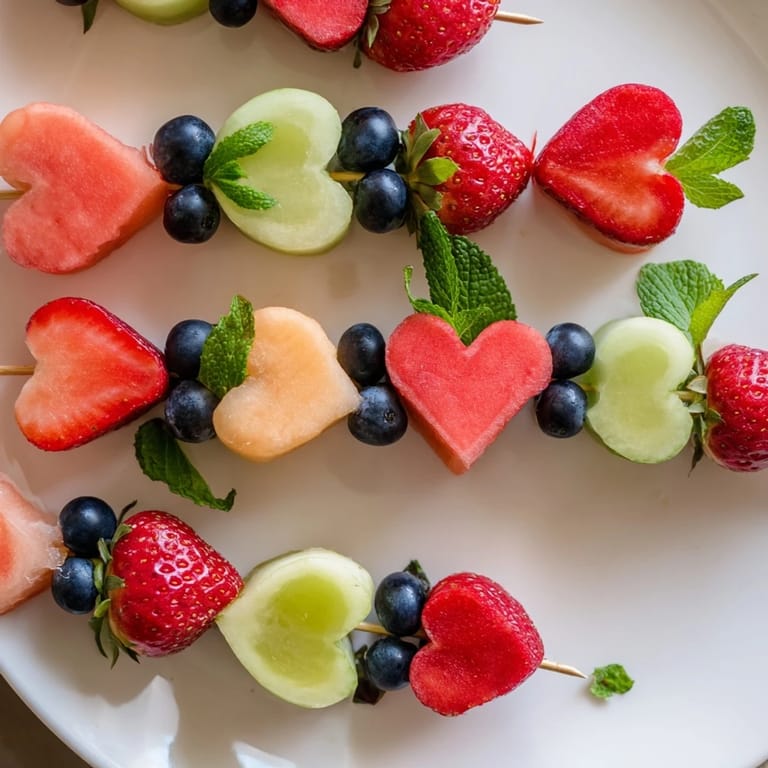 Pin it A vibrant, fun, and healthy snack featuring heart-shaped fruit pieces threaded onto skewers&mdashperfect for kids, parties, or a refreshing dessert.