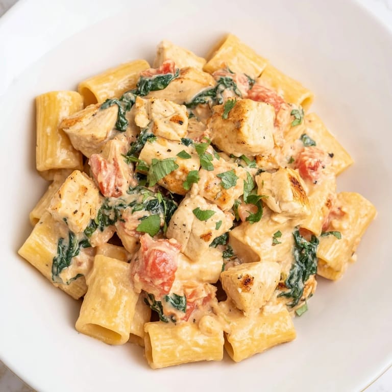 This recipe is generous enough to handle your improvisation. Chicken thighs are juicier and more forgiving than breasts, rotisserie chicken lets you skip cooking entirely, and sun-dried tomatoes add an intensity that surprised me the first time I tried it. You can swap spinach for arugula if that's what's in your crisper drawer, or use half-and-half if cream feels too rich for your mood that night.