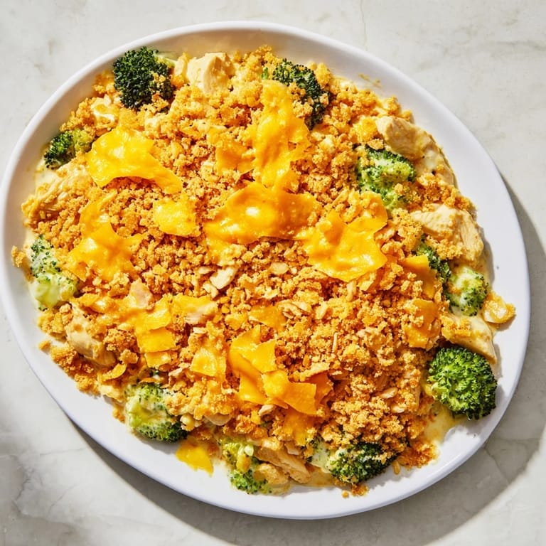 Pin it A comforting creamy casserole featuring tender chicken fresh broccoli and a golden cheddar cheese toppingβperfect for a family dinner or potluck.