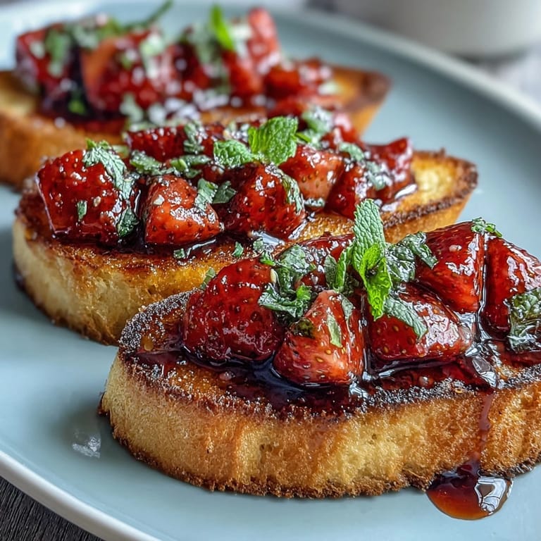 Pin it When summer strawberries are at their peak, there's no better way to celebrate their vibrant sweetness than with Fresh Strawberry Bruschetta. This elegant appetizer transforms a classic Italian favorite into a bright, modern bite that's perfect for warm-weather gatherings. Juicy diced strawberries mingle with fresh mint and a hint of honey, creating a refreshing topping that sits beautifully atop crispy, garlic-rubbed baguette slices. A drizzle of homemade balsamic reduction adds a sophisticated tang that balances the fruit's natural sweetness. Ready in just 20 minutes, this stunning dish proves that simple ingredients can create extraordinary flavor when treated with care.