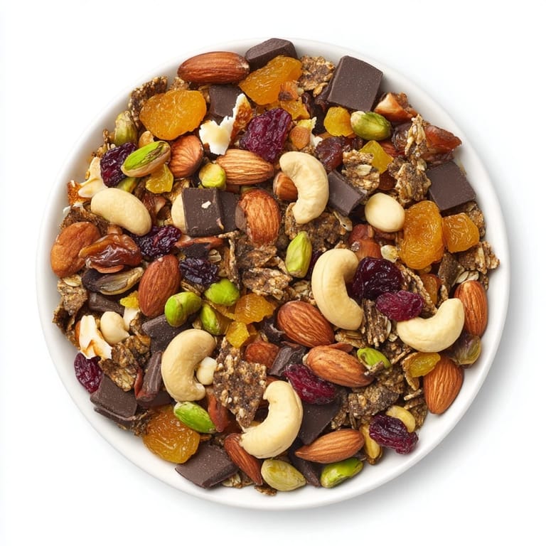 Pin it A hearty, energizing trail mix packed with crunchy nuts, dried fruits, and a touch of chocolate This mix is my go-to snack when hitting the trails, giving me energy and satisfaction all day long. Get 10 meals you can make faster than delivery arrives. Seriously. One email. No spam. Unsubscribe anytime. My family enjoys this snack mix on long hikes, bonding over shared energy and tasty treats. Use freeze-dried berries for a tangy twist. Pairs well with cold brew coffee or herbal tea on the trail. Large mixing bowl, spoon or spatula, airtight container or resealable bags Contains tree nuts (almonds, cashews, pistachios), coconut, and chocolate (may contain traces of dairy and soy). Gluten-free if gluten-free granola and chocolate are selected. Always check packaging for possible cross-contamination if allergies are a concern. This snack mix is an easy and wholesome way to stay energized on any outdoor adventure. The mix features roasted almonds, cashews, pistachios, and pumpkin seeds for a crunchy texture and rich flavor. Yes, nuts can be replaced with extra seeds like sunflower or more pumpkin seeds, and allergy-friendly chocolate can be used. Using gluten-free granola clusters and chocolate ensures the snack is gluten-free and safe for sensitive diets. Store in an airtight container or resealable bags to maintain freshness and crunchiness. Pretzel sticks, banana chips, or freeze-dried berries can be added for additional crunch and tanginess. This mix complements cold brew coffee or herbal tea, enhancing the savoriness and natural sweetness.Ingredients