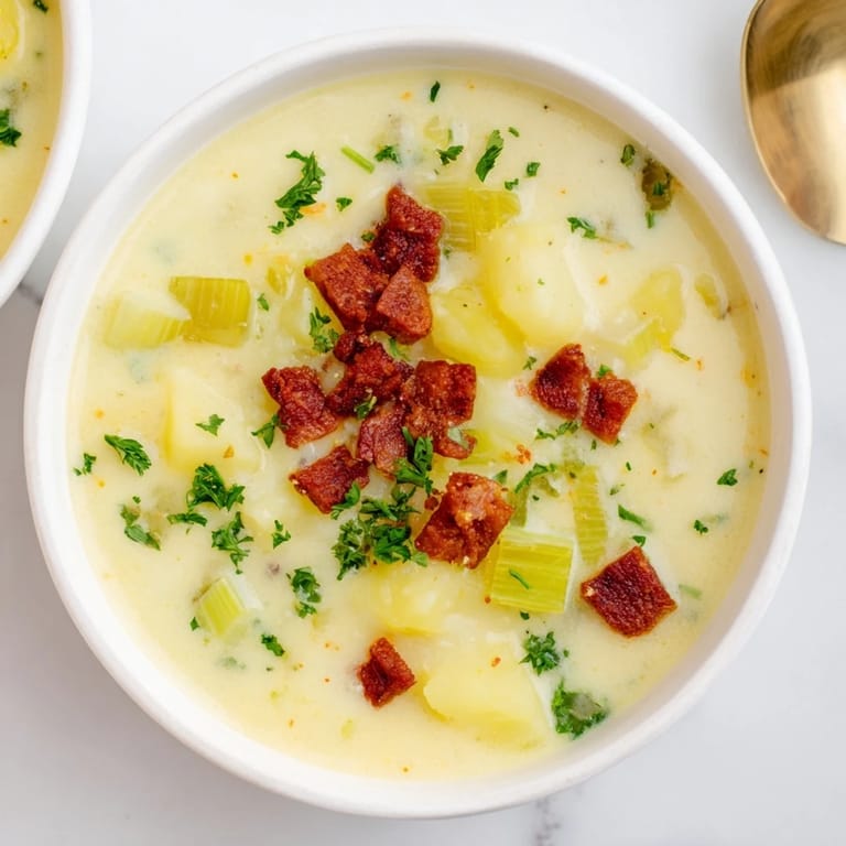 Pin it A hearty and flavorful soup combining creamy potatoes, tender leeks, and spicy chorizo for a comforting meal perfect for cool days.