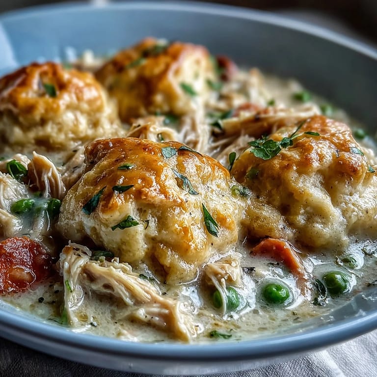 I made this for my sister's book club night, and halfway through the first course, someone's spoon froze mid-stir because they realized they'd already had three bites without meaning to. The creamy stew with its tender shredded chicken kept drawing people back, and when those fluffy biscuits soaked up the broth, the whole table just got quiet for a moment—the good kind of quiet where food does all the talking.