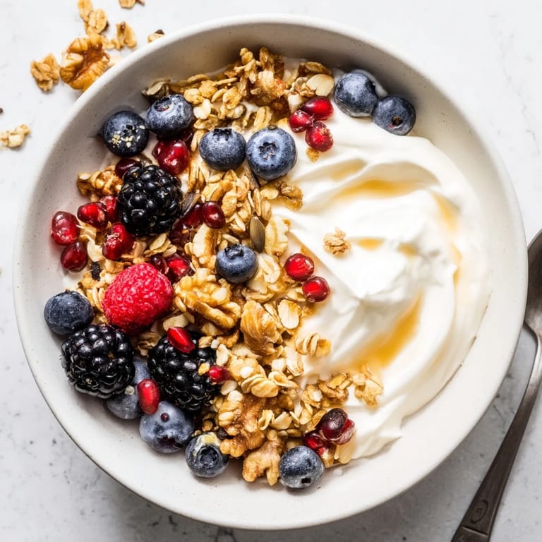 Pin it Embrace the chilly mornings with a Yogurt Bowl with Winter Berries and Spiced Crunch. This breakfast is a cozy, nourishing blend of creamy probiotic yogurt and the vibrant, jewel-toned colors of seasonal fruit, perfect for a modern European start to your day.