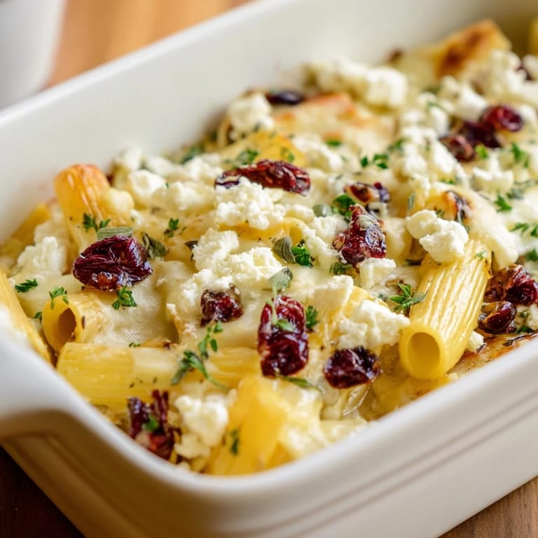 Pin it A cozy, savory-sweet pasta casserole featuring tangy feta, tart cranberries, earthy sage, and golden baked pasta—perfect for fall or holiday gatherings.
