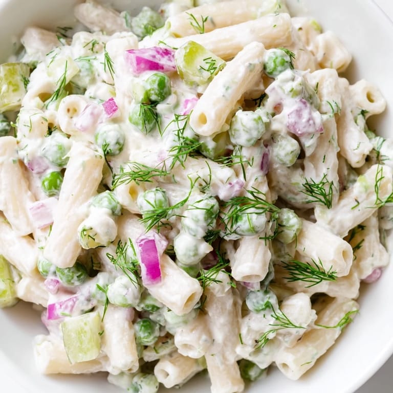Pin it The first time I brought this pasta salad to a neighborhood potluck, I was worried people would find the pickle-forward flavor too peculiar. Instead, I came home with an empty bowl and three requests for the recipe. Something about the bright crunch of dill pickles against that creamy dressing just makes people's eyes light up.
