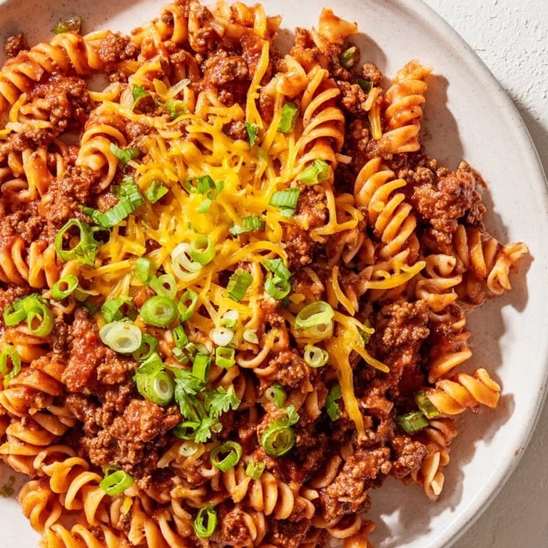 This recipe is honestly a blueprint more than a rule. I've made it with diced jalapeños stirred in with the onions when I wanted heat, with a can of black beans dumped in for texture and nutrition, with corn when my kids were being picky eaters because somehow corn makes everything more appealing to them. The taco seasoning holds it all together and makes it taste intentional no matter what you add. Swap ground turkey or chicken if that's what you have, use gluten-free pasta if you need to—the spirit of the dish stays exactly the same.
