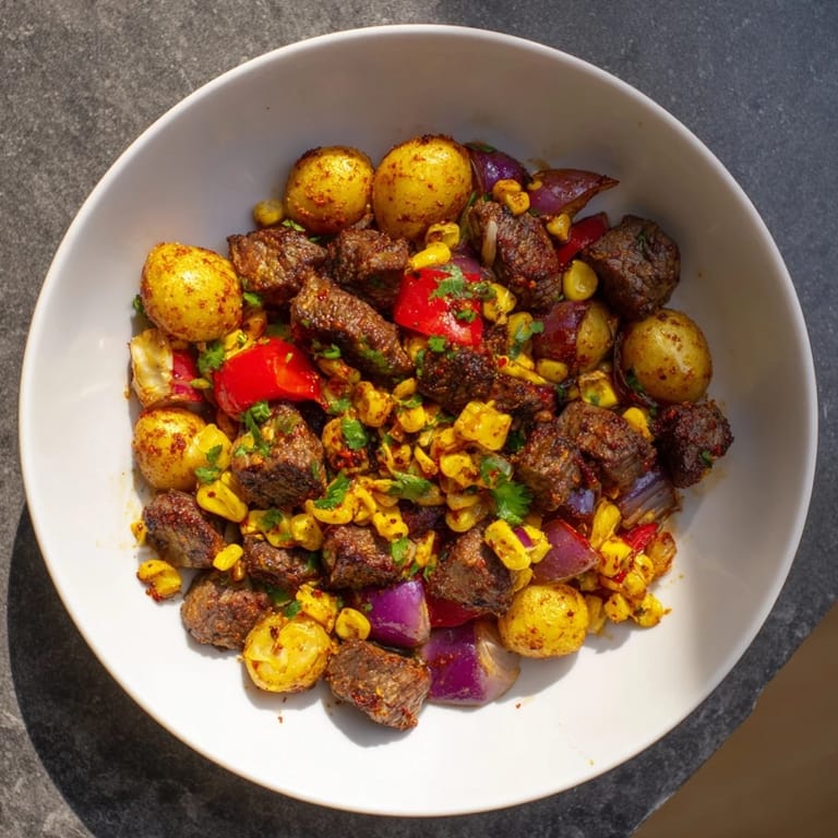 Pin it A hearty flavorful one-pan dish combining tender steak crispy potatoes and vibrant Southwestern spices for a satisfying meal.